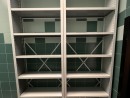 Спроектировали оптимальную конфигурацию расстановки стеллажей, которая позволила увеличить вместимость без нарушения требований безопасности. Изготовили и установили в книгохранилищах: стационарные полочные стеллажи со сплошной боковой стойкой серии СА— односторонние конструкции вдоль стен; двухсторонние по центру помещений для максимального использования площади, с лицевыми панелями под дерево (ЛДСП). В хозяйственных помещениях: помимо полочных стеллажей, комбинированный стеллаж: закрытая секция с дверями + секция со штангой.