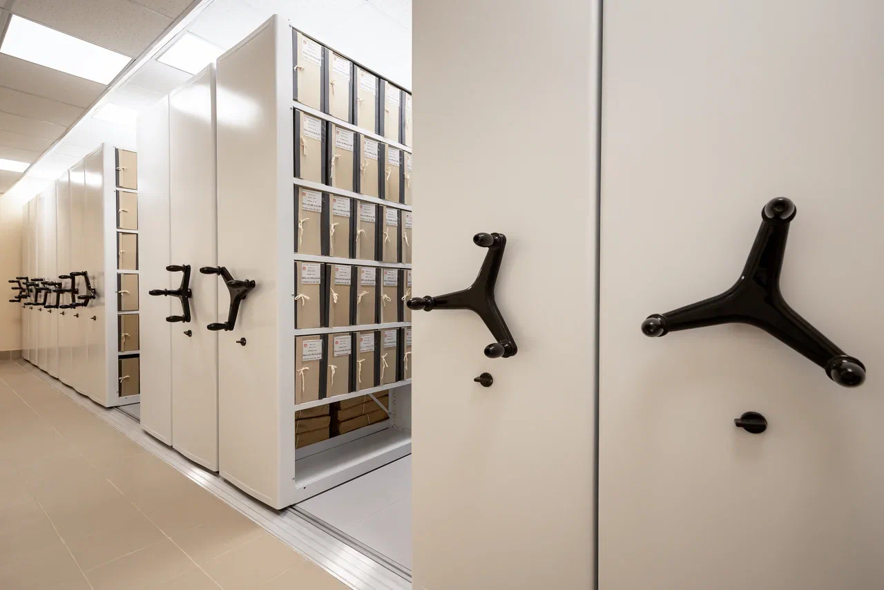 Архивные системы на рельсах обеспечивают компактное и эффективное хранение документов, позволяя значительно экономить пространство.