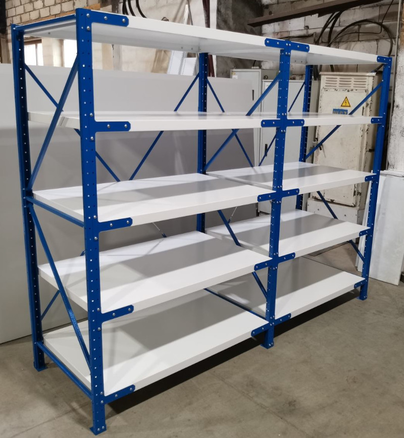 Среднегрузовые стеллажи складские выдерживают вес до 350 кг на каждую полку. Эти металлические стеллажи идеально подходят для хранения тяжелых предметов или поддонов.
